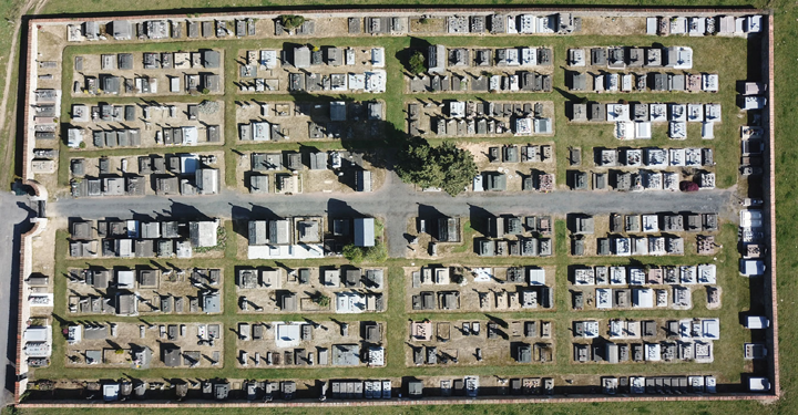 Nous prenons des photos aériennes de votre cimetière pour nos plans et pour une exposition dans votre bureau.